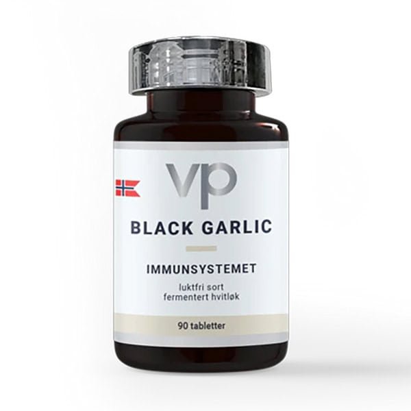 VP Black Garlic er fermentert/modnet hvitløk som er rik på det svovelholdige stoffet SAC (S-allyl Cysteine) og inneholder 600 mg SAC per. tablett tilsvarende 6000 mg ren hvitløk. Fermentert black garlic er også og luktfrri hvitløk som ikke gir dårlig ånde.