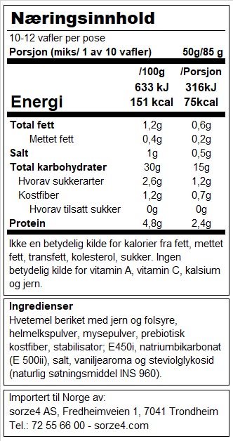 Vår vaffelmiks er prebiotisk. Inneholder ikke palmeolje eller genmodifiserte ingredienser.
